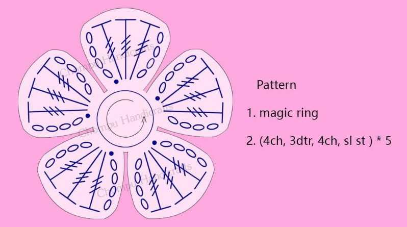 Chain three, then work two double crochets in the next stitch. Chain three again and slip stitch into the next stitch. Repeat this sequence around the circle until you have six petals. You’ll see your flower take shape almost instantly!
