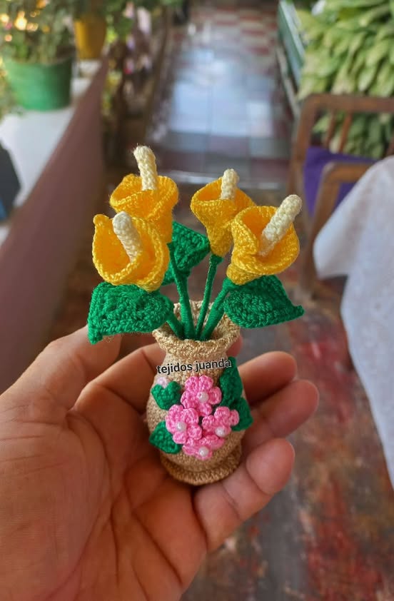 The Delicate 3D Mini Vase with Crocheted Alcatraz Flowers – A Beautiful FREE Crochet Pattern not only teaches technical skills but also inspires creativity. You can experiment with colors, flower arrangements, and vase designs to personalize your creation. Learning to shape petals, leaves, and stems in 3D gives your flowers a realistic look, while following the free pattern ensures a structured and consistent outcome. This project is perfect for gifting, home decoration, or adding to a crochet collection.