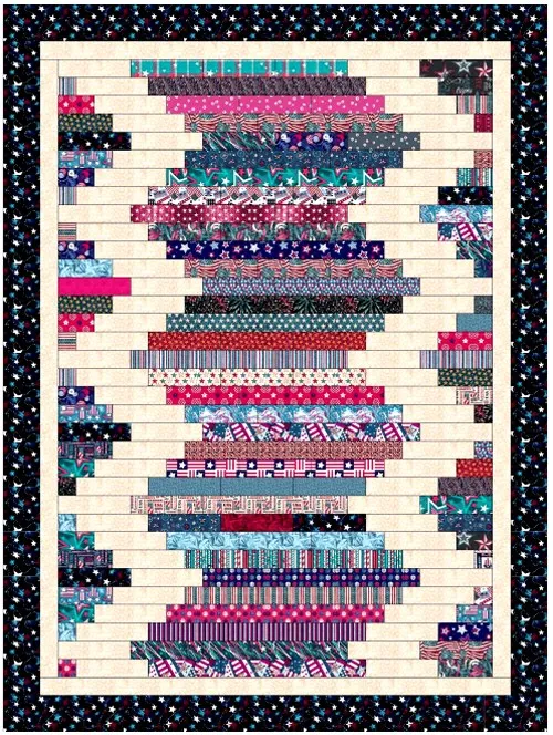 The pattern can be adapted for small wall hangings, lap quilts, or full-sized bed quilts.